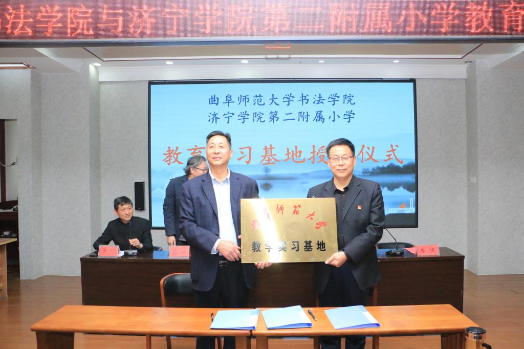 曲阜师大新闻中心讯(通讯员:薛翠)414日下午16:0015日上午9:00,书法学院“教学实习基地”签约授牌仪式先后在济宁学院第二附属小学和曲阜市实验小学举行。书法学院党委书记荆兆清同志,副书记胡乃永同志,书法学院乌峰教授,书法学院办公室主任刘育华,2018级本科生辅导员薛翠老师,济宁学院第二附属小学苏明副校长,曲阜市实验小学王利民校长出席了签约与授牌仪式。