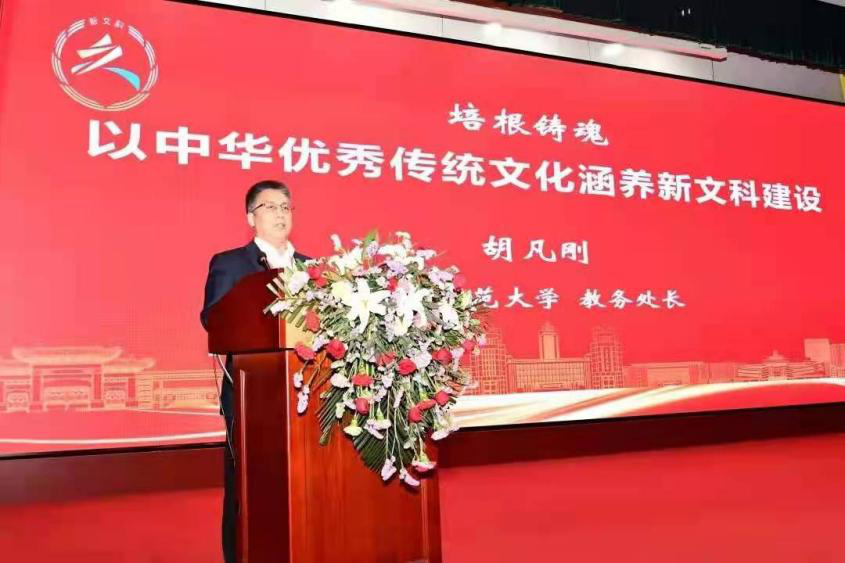 胡凡刚在会上以培根铸魂---以中华优秀传统文化涵养新文科建设”作典型发言,以高度的文化自觉承担起“以文化人,为国弘文”的神圣使命,介绍了曲阜师大传承弘扬优秀传统文化推进新文科建设主要做法和典型经验,就新文科建设时代内涵、价值意义和路径选择进行了探讨和交流。
