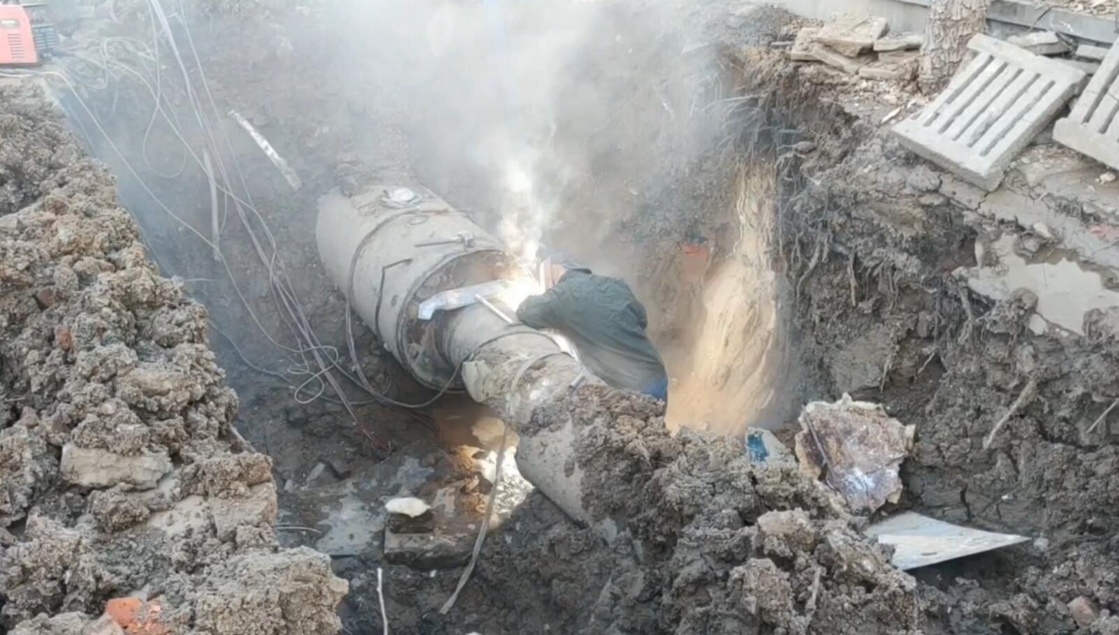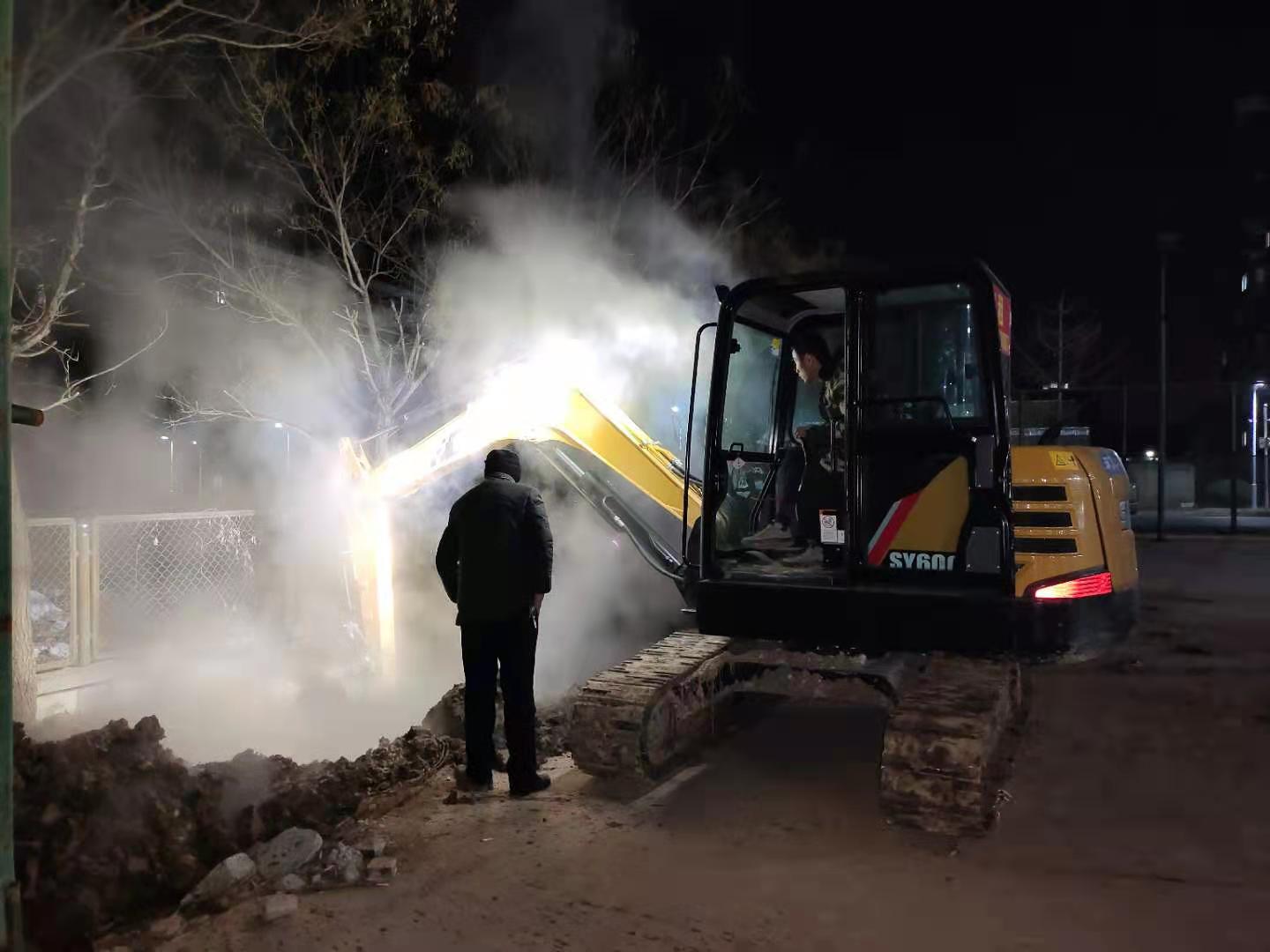 面对突发情况,为尽快恢复供暖,学校水电暖服务中心工作人员与曲阜聚源热力有限公司工作人员投入到紧张的抢修工作中,深夜室外零下十几度,抢修人员冒着严寒,查找分析原因,连夜不停进行维修,十几名工作人员轮流作业,焊接管道,挖土车对漏水土方进行挖掘,吊车、新管道备用以待。经过二十多个小时的不间断抢修,9日下午供暖恢复了正常。