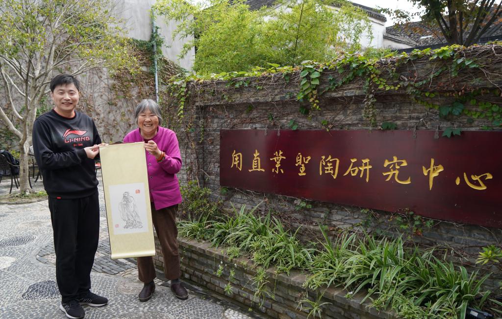 在叶圣陶研究中心,大家拜访了前来参加首届圣陶文化节活动的叶圣陶孙女叶小沫女士、孙子叶永和先生。座谈中,刘永简要介绍了教师博物馆各方面的筹建工作及叶圣陶专题馆的功能特色、馆舍规划、陈列大纲、藏品分类等概况和下一步建设的相关思路。叶小沫女士听到教师博物馆把叶圣陶先生邀请进名师堂非常高兴,高度赞扬XK在线创建中国首座以教师文化为主题,以师德教育为特色的博物馆是实至名归,她希望教师博物馆打造叶圣陶教育思想实践基地,讲好名师故事,弘扬传承名师精神,让前来学习参观的老师像叶圣陶先生那样教书育人。主客双方就叶圣陶专题馆定位与特色、藏品借展复制等事宜进行了沟通与交流。