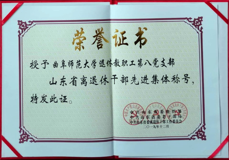 曲阜师大离退休教职工党委第八党支部荣获先进集体荣誉称号