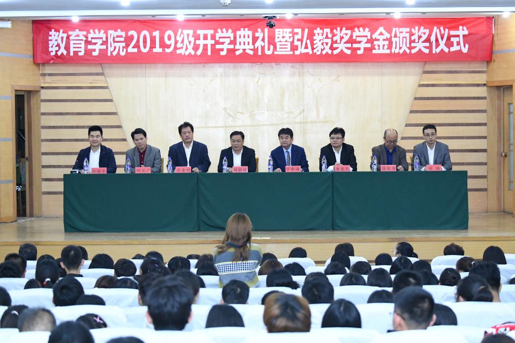 10月23日下午,教育学院2019级开学典礼暨弘毅奖学金颁奖仪式在孔子会堂举行。副校长胡钦晓,我校优秀校友、教育学院弘毅教育发展基金创立者、烟台合普生物制品有限公司董事长于希海,教育学院党委书记孙俊华、院长唐爱民、党委副书记徐庆海、副院长张奎明、副院长何文广、副院长徐瑞,院部分教师和在校生代表、2019级全体新生。本次会议由院党委书记孙俊华主持。