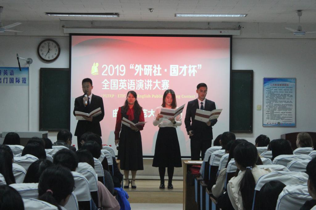 本次校园选拔赛由来自两校区的老师和学生担任主持人,外教及各学院老师作为打分评委以及提问评委。评委老师们耐心聆听,认真提问,本着公平、公正、公开的原则进行评判打分。每一位参赛选手的脱颖而出离不开老师的倾囊相授。