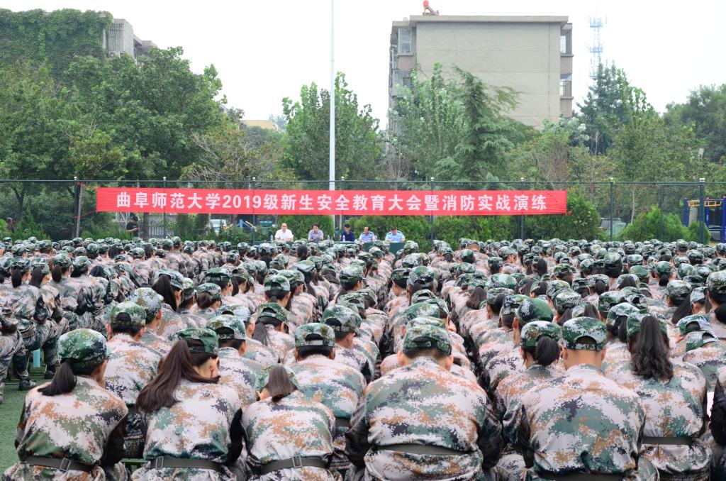 为帮助大学生树立安全意识,平安顺利度过大学生活,9月17日,我校在两校区召开新生安全教育大会并举行消防演练活动。大会邀请济宁市国家安全局、曲阜市公安局、曲阜市消防救援大队、日照市消防支队和大学城派出所相关负责人为新生做安全教育报告,我校保卫处及2019级新生参加了教育活动。活动由保卫处副处长王光江、孔东升主持。