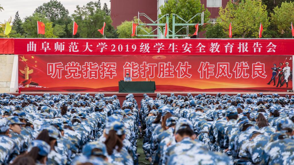 安全教育大会上,济宁市国安部门负责人就提升在校大学生的国家安全意识做了深入细致的讲解;曲阜市公安部门反诈中心责人结合当前社会上诈骗手段和特点,向同学们讲解了有效预防诈骗的方法;派出所警官则从人身安全、交通安全、网络安全和远离毒品等方面,列举和剖析了大学校园内的典型案例,就培养大学生健康的心理和高尚的品质提出了建议;消防部门负责人向学生讲解了基本消防安全知识,就学生宿舍火灾案例及预防做详细说明。