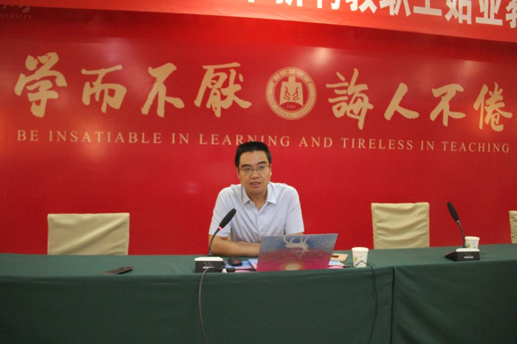 教务处副处长朱献贞、熊吉忠,研究生处副处长罗文伟,教学与评估中心副主任李傅山,以专题报告的形式为新入职教师进行了学校管理、教学、科研等相关政策解读;教育学院李允教授、化学与化工学院苗深花教授做了课堂教学、教学设计的主题报告,在山东省青年教师教学比赛中获得一、二等奖的张英杰、孙传波、刘金发、潘虎四位老师分别做了精彩的公开示范课展示。