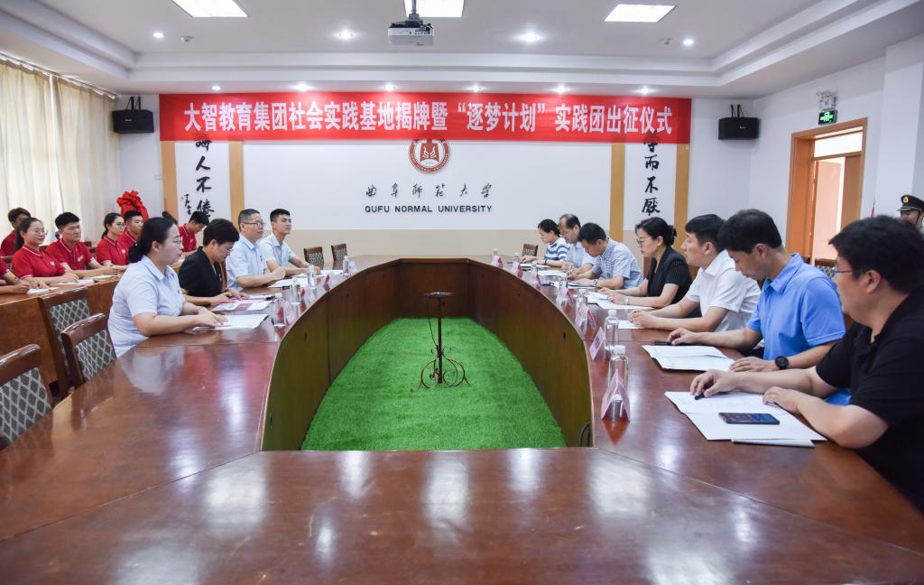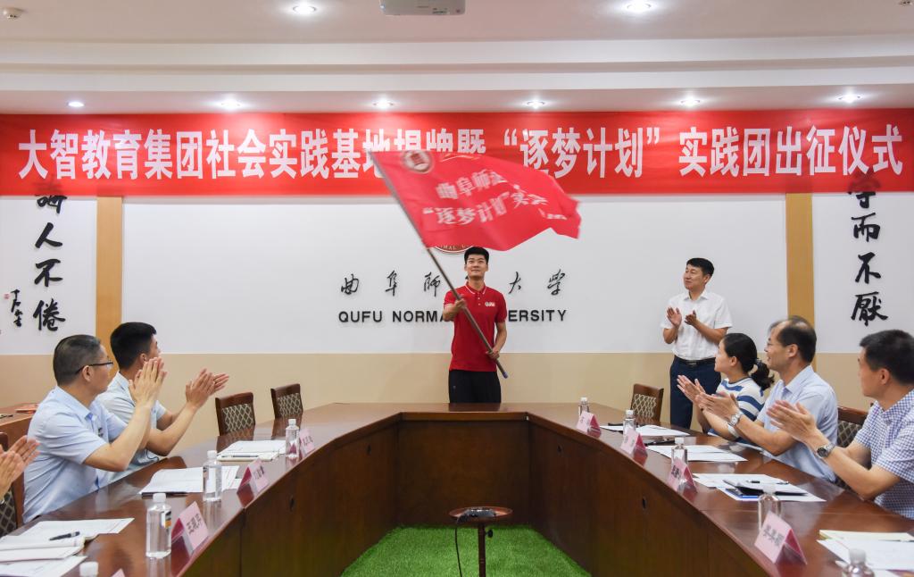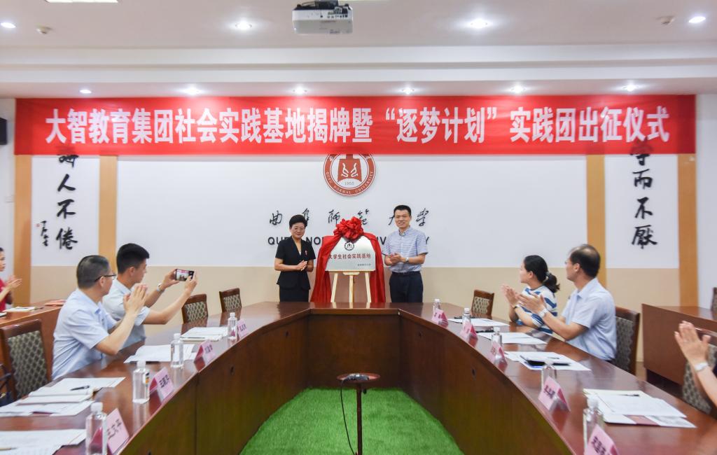7月12日上午,由我校学生工作处与大智教育集团联合打造的社会实践基地揭牌暨“逐梦计划”实践团出征仪式如期举行。党委常委、宣传部部长张隆海,学生工作处处长姜美颖、团委书记宋国栋、大智教育集团党委书记王现芹、我校大智校友会会长刘勤章等出席了会议,会议由学生工作处副处长杨东主持。学生工作处、国内合作处等单位相关老师,“逐梦计划”社会实践团全体成员参加了会议。