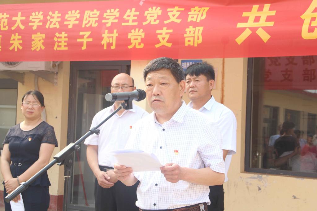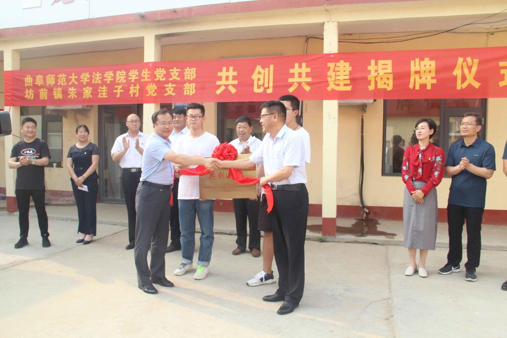 在此之前,我校党委组织部正处级组织员宋广新、法学院党委书记曹明亮、莒南县副县长张振群、法学院党委副书记、学生党支部书记卢瑞霞,省派驻莒南县坊前镇朱家洼子村第一书记王慕东、刘建河等参加党建共建揭牌仪式。