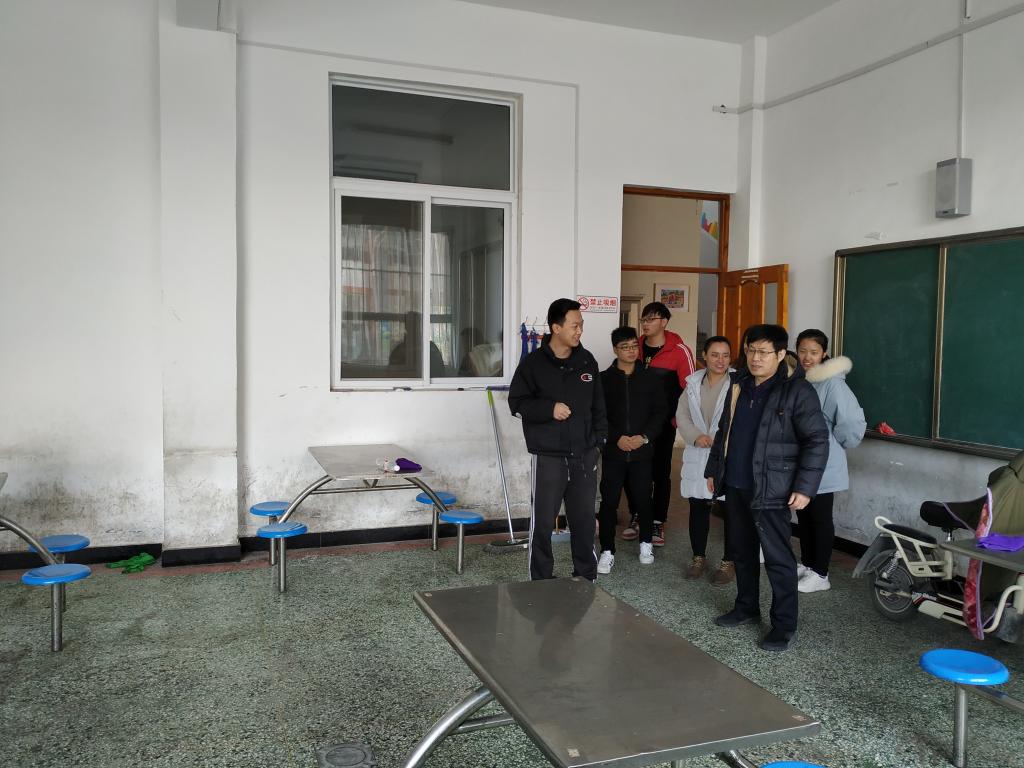 走访过程中,李兴保一行深入办公室、教室、宿舍和食堂实地考察实习支教学生的学习、生活和工作环境。