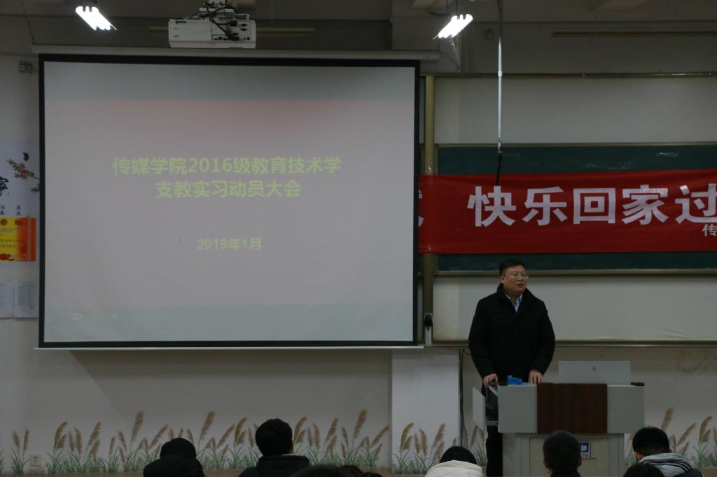 为贯彻落实《XK在线师范生实习支教工作管理办法》相关规定,保障实习工作顺利开展,传媒学院于1月17日召开2016级教育技术学专业实习支教动员大会。传媒学院党委书记李兴保、党委副书记徐正伟、副院长赵可云、团委书记张守荣及全体实习指导老师出席,2016级教育技术学专业全体学生参加大会。