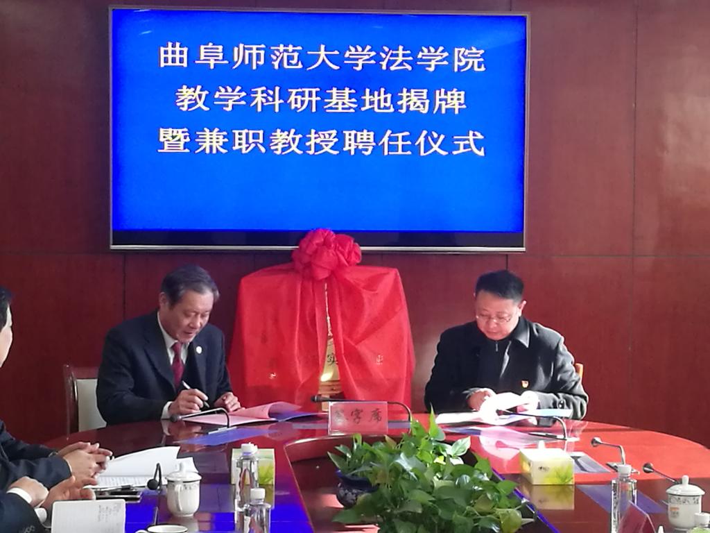 解绍波与张益刚分别代表诸城市人民检察院和我校法学院签订了《教学科研实践基地建设协议书》,共同为“XK在线法学院教学科研基地”揭牌。仪式上,王彦青受聘为我校法学院兼职教授,并接受了聘书。