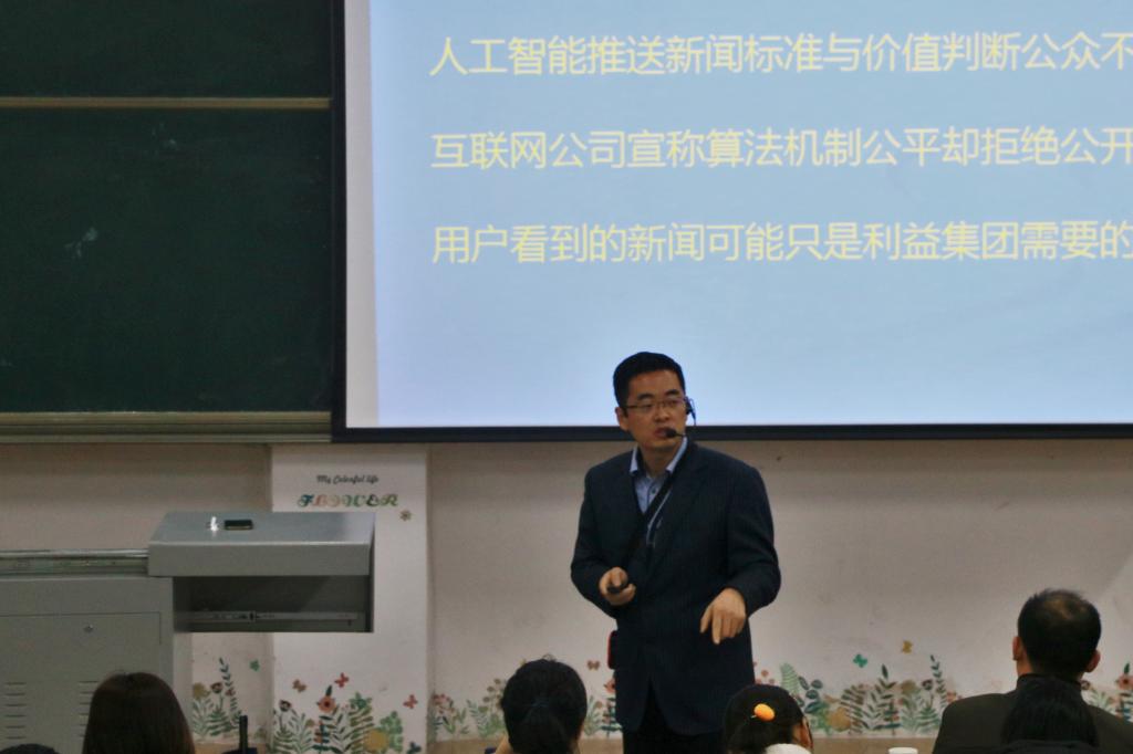 在第一讲中,赵鑫作了题为“文化人类学纪录片在中国——兼述我的跨学科研究经历”的报告。他通过对自己的学术研究成果《中国文化人类学纪录片史论》的介绍,对文化人类学的四个阶段进行了具体讲解。李秋华作了题为“新媒体创新指数的构建与实践考察”的报告,通过分析当前新媒体创新的形势,强调了新媒体创新的重要性。第三讲的主讲人王汝虎作了题为“古代形式批评——中国文学传统的一种理解方式”的报告。他借用诗人的诗作名篇对所授理念做了生动的阐述,并将古代文学与现实生活相结合来促进在座同学的理解。陈培培以“如何走进严歌苓的世界”为切入点,为同学们作了题为“谎言与出逃:我读严歌苓的平行世界”的报告。在最后一讲中,刘波结合当下热点问题,从哲学角度出发,引发对“谣言与真相”的讨论,从而引出“后真相时代的微信谣言传播”的主题。