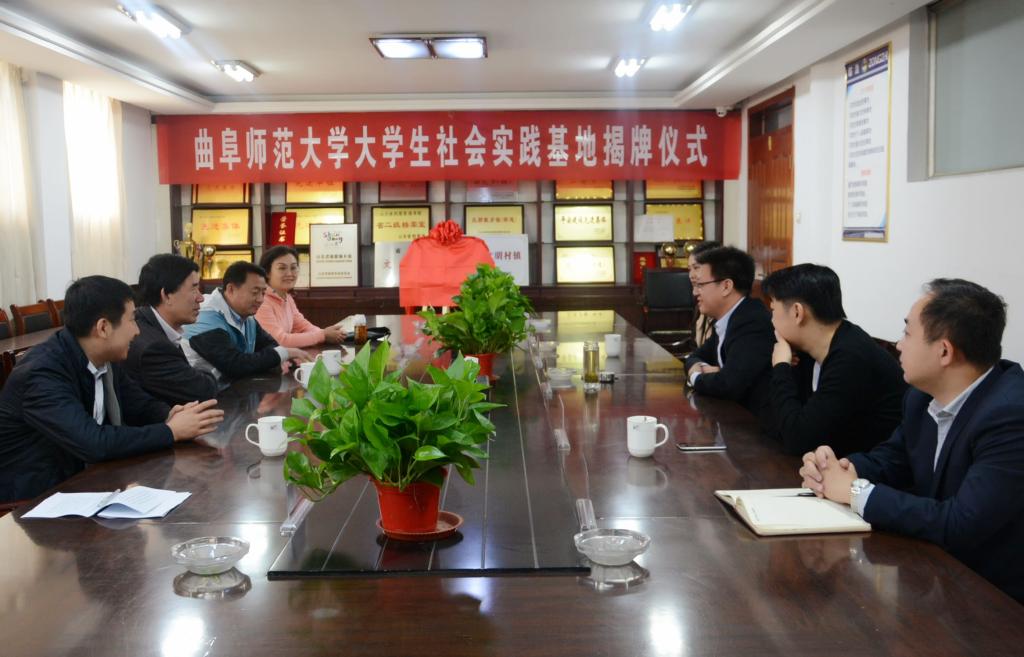 10月13日,我校在曲阜市姚村镇建立大学生社会实践基地。我校宣传部部长纪洪涛、学生工作处处长杨永明、团委书记宋国栋、学生工作处副处长石倩、姚村镇党委书记孟双建、共青团曲阜市委书记邱波、姚村镇副镇长盛兴平、共青团曲阜市委副书记王文函、姚村镇团委书记杨文轩出席了揭牌仪式。