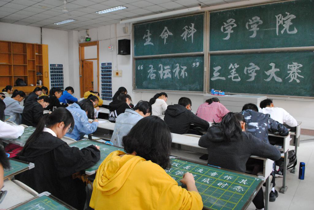 为了进一步树立师范生汉字书写规范意识,提升我教师教育专业学生职业技能,强化师范生的教育教学综合素质、全面提高就业生的就业竞争力。日,生命科学学院举办师范生“杏坛杯”钢笔字、毛笔字、粉笔字“三笔字”赛。党委副书记赵强张祥沛老师、郭永峰老师担任了本次比赛的评委。2016级、2017级师范生参加了此次比赛。