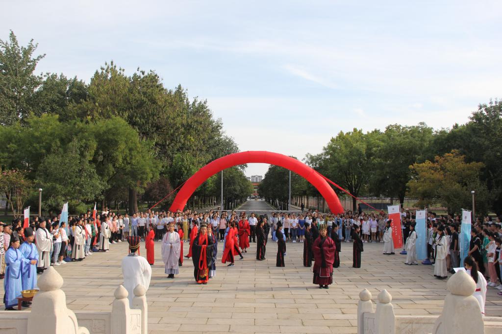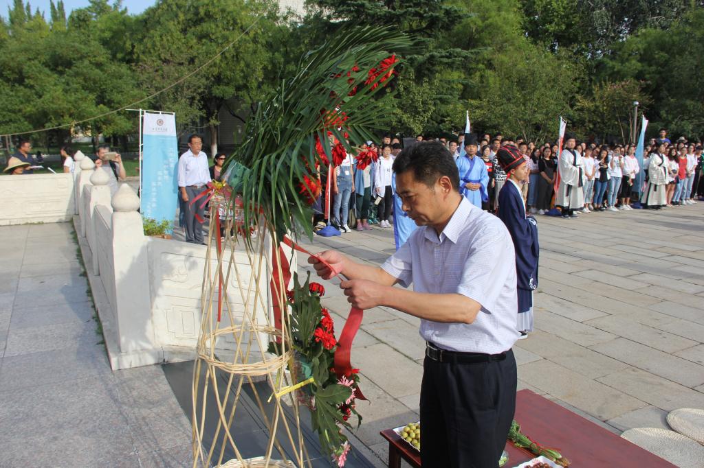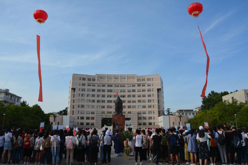 为庆祝第34个教师节的到来、弘扬尊师重教传统,9月9日下午,历史文化学院在我校孔子文化广场举行 “释菜礼”展演。学院党委书记尹明法、院长成积春出席活动,2018级全体新生现场观礼。