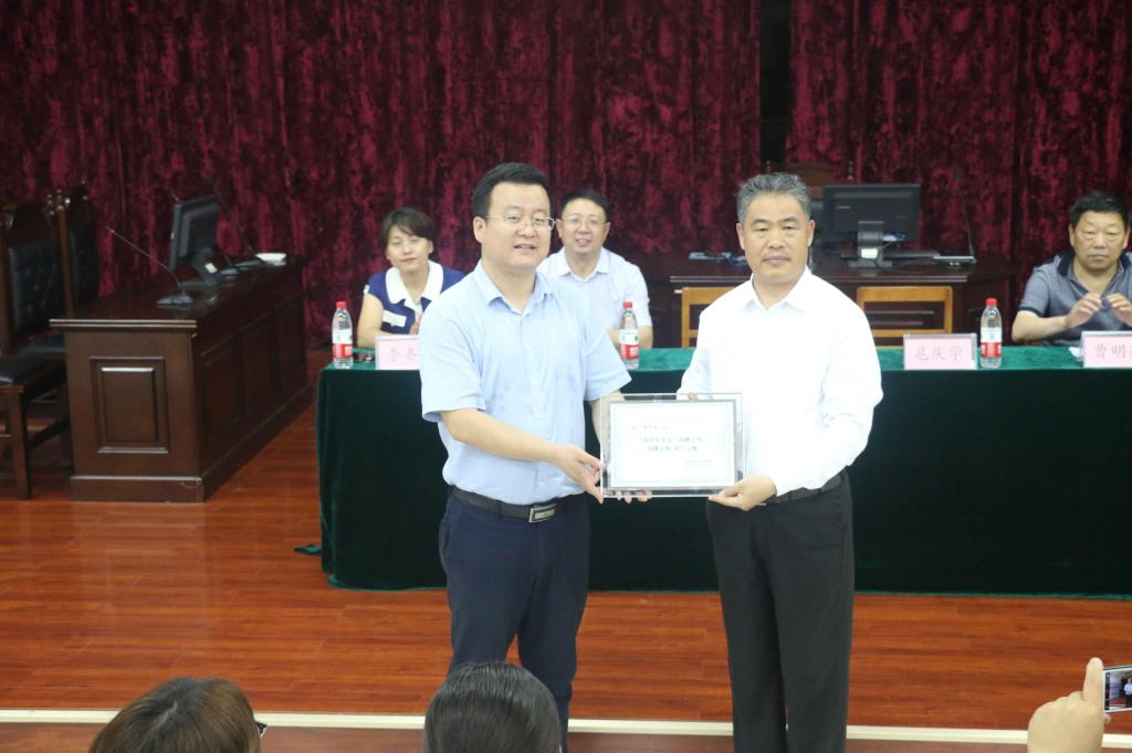 扈庆学为潘月华颁发捐赠证明,潘月华在仪式上发表了热情洋溢的致辞。