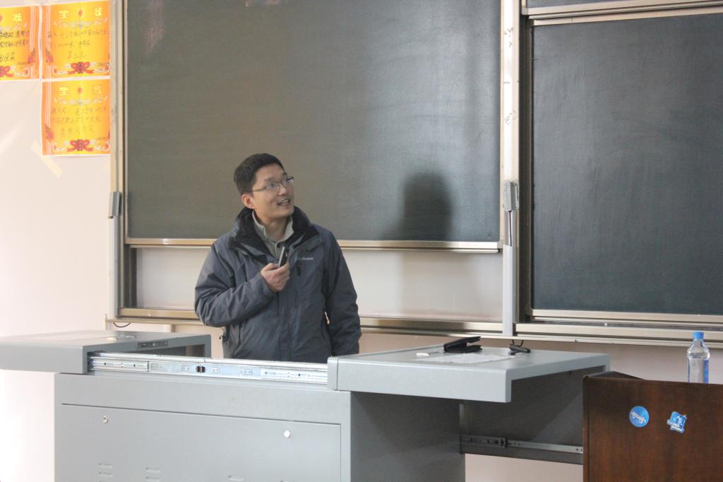 王新沛博士作了题为《在冠心病无损检测研究中大学生的科研与创新》的报告,以指导的本科生在冠心病无损检测领域开展的部分工作为例进行讲解,层层递进,为工学院学子的科研和创新之路提供了指引。