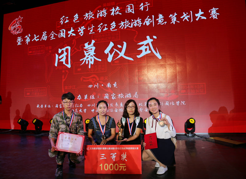 日前,由全国红色旅游工作协调小组副组长单位国家旅游局主办,国家旅游局红办、中国旅游协会旅游教育分会、四川省旅游发展委员会等单位承办的第七届全国大学生红色旅游创意策划大赛总决赛于在四川省西华师范大学成功举办。由我校地理与旅游学院学生王芳蕾、孙威龙、彭丽荣、钟佳和周丹组成的“缘梦红旅”队进入总决赛,并展示了主题作品《走进沂蒙山,重温红嫂情》和四川采风作品《满腔青春血,一曲从军行:川陕革命根据地研学旅行课程》,获得了 “再忆鱼水情,重振军旅魂”主题第五名,大赛三等奖的好成绩。同时,我校获得了大赛“最佳组织奖”,指导教师吴军副教授获得了大赛“最佳指导教师奖”。