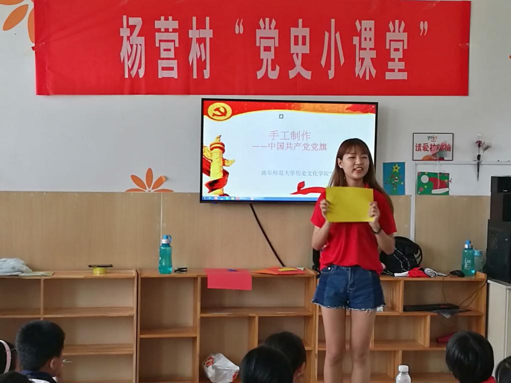 “党史小课堂”结合历史文化学院专业特色,是继“国学小课堂”后开展的又一教育实践活动。随着“党史小课堂”的开展,志愿者们通过看视频、听故事、唱红歌等丰富多彩的形式向农村的孩子们传授国史、党史、家乡史及国学方面的知识,从而使农村儿童了解到“学党史、颂党恩、跟党走”的重要意义,教育培养其爱党、爱国、爱家乡的思想情感,进而使他们更好的继承革命传统,发扬优良作风,好好学习,报效家乡,报效祖国。