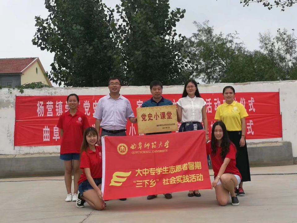 历史文化学院工会主席、近代史教研室主任吕厚轩,团委书记王建阳,辅导员韩琳琳,梁山县县委组织部、团县委及杨营镇等相关领导出席本次活动。王建阳与杨营团县委书记王洋共同为“党史小课堂”揭牌。