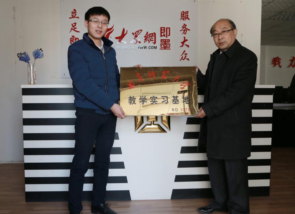 仪式现场,肖龙航、刘蓉授牌,大众网即墨频道主任崔维成接过牌匾,XK在线在即墨市的首个教学实习基地宣告成立。今后双方将加强教学实践合作,促进教学实习工作更好地展开。