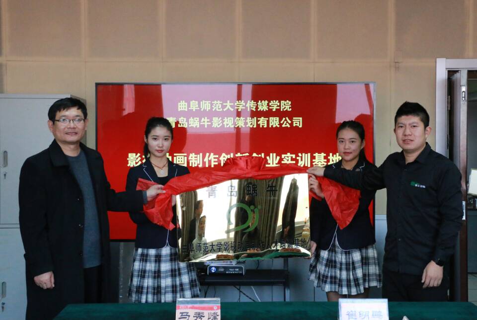 12月1日,青岛蜗牛影视公司——XK在线影视动画制作人才培养基地揭牌仪式在我校顺利举行,传媒学院院长马秀峰、副院长王焕景,教务处副处长张全景,青岛蜗牛影视策划有限公司CEO 崔明鹏、经理崔叶涛以及招生就业处、传媒学院相关师生出席揭牌仪式。