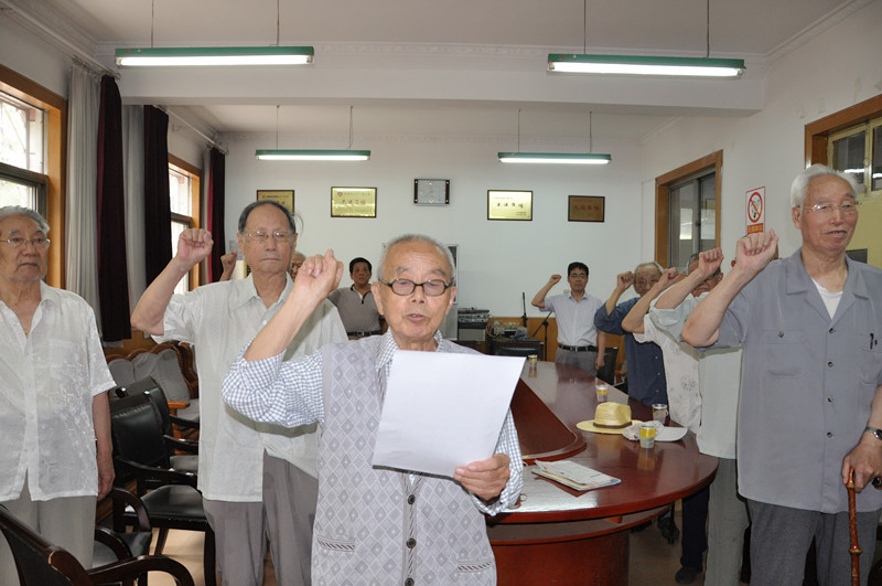 6月29上午,我校离休老干部举行建党95周年庆祝活动。原党委副书记、离休干部党支部书记范海风领誓,各位老干部面向党旗重温了入党,头发花白不掩声音洪亮。离退休工作处处长王文西宣读了工作汇报,阐释了对《党章》的深刻理解,王文西强调各位离退休老干部党员在工作中率先垂范,通过各种途径关心学校、关爱年轻党员。学校将继续做好老干部工作,祝愿与会老干部党员身体健康,安享晚年。