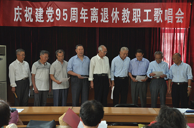 6月30日下午,庆祝建党95周年离退休教职工歌唱活动于我校老干部楼放映室举行,离退休工作处党委书记冀贞友出席活动并致辞,对七一建党节致以祝贺,对各位老教师的出席表示感谢。随后,各离退休教职工代表队依次登台演唱爱国歌曲。由全体成员带来的曲目《没有共产党 就没有新中国》拉开了演出帷幕,演唱高亢嘹亮,唱响了中国人民万众一心跟党走的主旋律;孔祥美、仝天玲老师演奏的《亲吻祖国》充分展示了我校教职工对于党和人民的无限热爱;女声小合唱《南湖的船 党的摇篮》柔美婉转,唱出共产党成立时深得民心的场景。各个表演饱含对党的情感,演出过程中掌声不断。最后,歌唱会在全体成员激情昂扬的《我的祖国》的歌声中圆满结束。