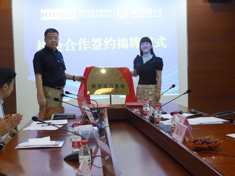 6月17日上午,考察组一行在参观山东东昊华晨国际人才交流有限公司后,双方进行座谈。公司总经理王蕾对我校的到访表示欢迎,王蕾介绍了公司目前的发展情况,并对我校的培养的学生质量高度评价。我校学生工作办公室主任孔令军在讲话中介绍了我校和翻译学院的发展情况和办学成果,并希望校企双方优势互补,建立完善协同培养创新型人才的有效机制,实现合作共赢,共同发展。翻译学院党委书记李金雷与王蕾签署了合作协议,并共同为我校教育实习基地(NO 1012)揭牌。山东东昊华晨国际人才交流有限公司是中国首家以跨境人才培养及大学生国际就业为特色的专业人力资源服务机构,也是商务部批准的对外劳务合作企业。作为山东省高校毕业生就业信息网国际交流项目专业服务机构,开展了山东大学生海外就业工程,在商务厅指导下,是山东省首家大学生海外就业特色服务基地。本次校企双方校企合作协议的签订,对我校人才教育培养必将起到积极推动作用,无论对于深化我校翻译学科教育教学改革、提升人才培养质量,还是满足企业人才需求、实现企业持续健康发展,都具有重要的意义和影响。