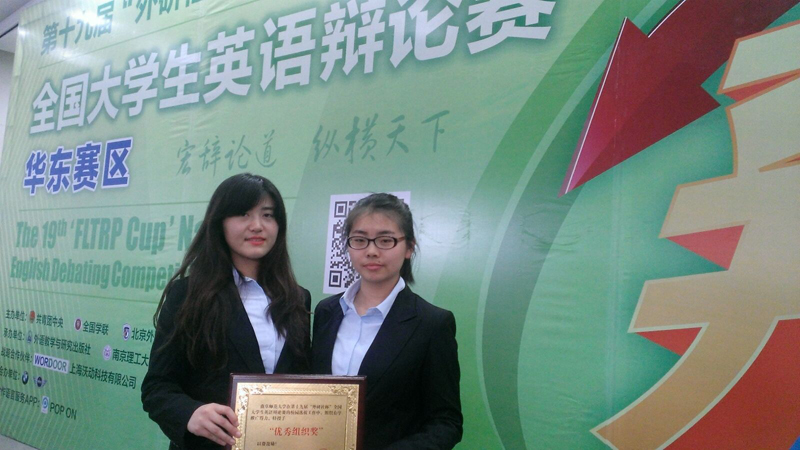我校两名同学荣获第十九届“外研社杯”全国大学生英语辩论赛华东赛区三等奖