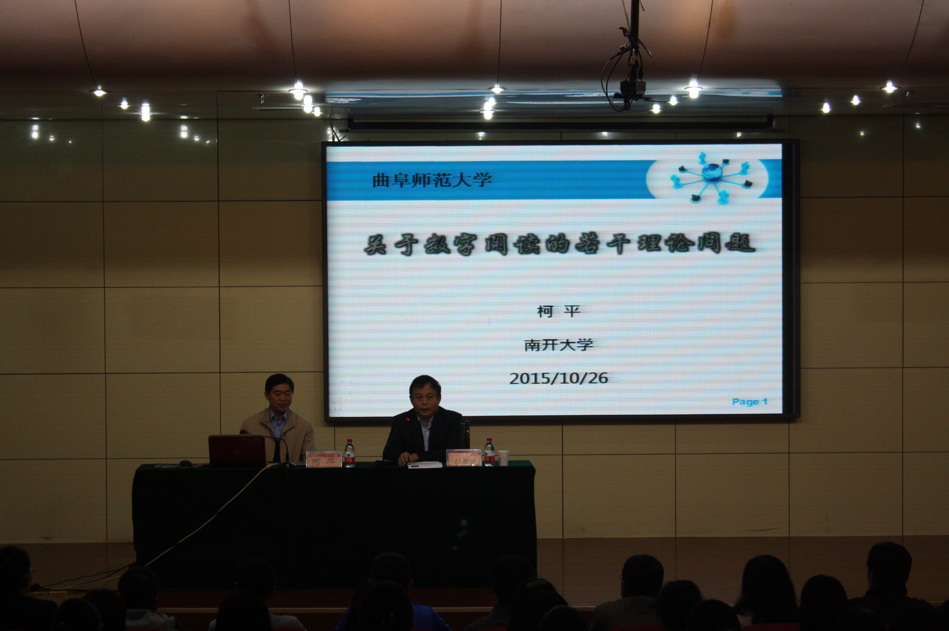 柯平教授从阅读的三境界出发,引申信息时代的阅读形态已经发生改变,阅读媒体正由传统纸媒向数字媒体过渡,阅读的概念也处于演变之中,数字阅读时代已然来临。柯教授为在场师生解读了数字阅读的文化现象、数字阅读的感知过程、数字阅读的认知过程、数字阅读中的读者“角色参与”、数字阅读行为、数字阅读的社会语言等十个方面的理论问题,向同学们展示了他最新的研究成果。整场讲座旁征博引、深入浅出,赢得了阵阵掌声。