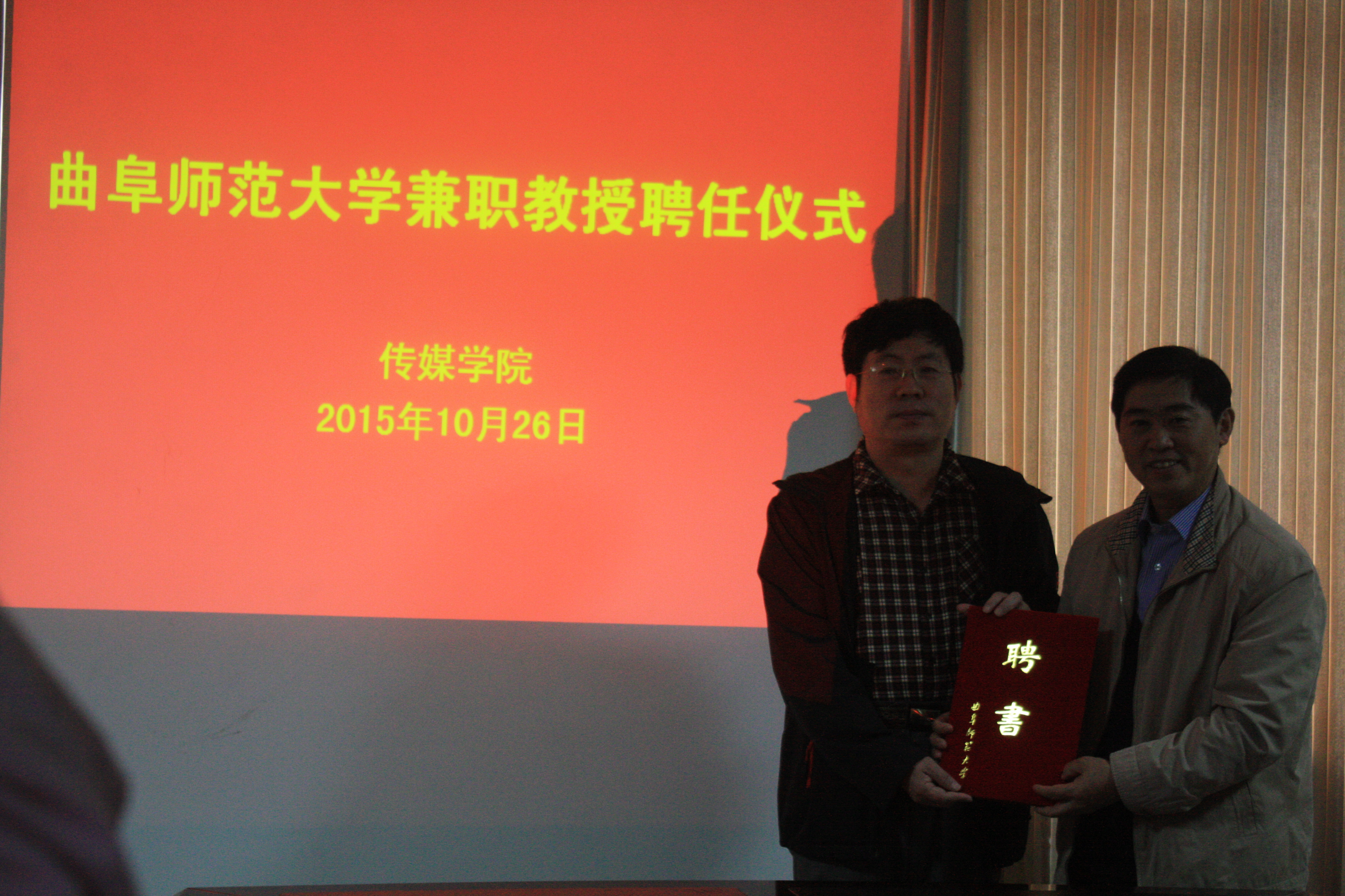 报告会后,举行了聘任柯平为我校兼职教授仪式。传媒学院党总支书记李兴保为柯平教授颁发兼职教授聘书。