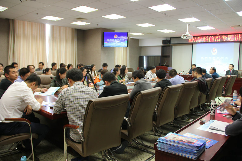 10月25日下午,政治与公共管理学院在学院MPA学术报告厅举办MPA学科前沿专题讲座,日照市副市长、公安局局长丛培浩应邀作了“我们的警务理念”为主题的报告,报告会由政治与公共管理学院党总支书记王维先主持。