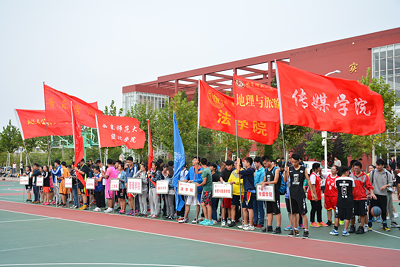 10月8日下午,日照校区2015年迎新杯篮球赛开幕。校区管理办公室、机关党总支、学生工作办公室、信息科学与工程学院、地理与旅游学院、工学院、管理学院、政治与公共管理学院、体育教学部等单位负责人出席开幕式。 各学院篮球队运动员举着鲜亮院旗帜入场。运动员代表进行宣誓:遵守比赛规则和赛场纪律,服从裁判,尊重对手,团结协作,顽强拼搏。随后裁判员田名鑫代表宣誓:严格遵守比赛规程,严肃认真,公正裁决。 校区管理办公室主任池福安为法学院与美术学院男篮比赛首场揭幕赛开球。比赛首日,共有传媒学院对信息科学与工程学院、法学院与美术学院、翻译学院与地理与旅游学院的三场男篮比赛,和经济学院对音乐学院、工学院对政治与公共管理学院两场女篮比赛。