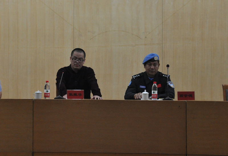 9月23日晚,中国报告文学学会作家、中国公安部文联签约作家、文学院校友张振华携黑龙江省边防总队宣传干事暨中国第一支赴非洲维和警察防暴队新闻官高学德中校来到我校,为师生讲述了各自的生活工作经历。