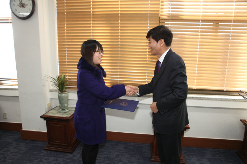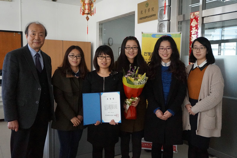 1月2日,国立安东大学孔子学院中方院长潘丽丽在安东大学年度表彰大会上荣获功劳奖,由安东大学校长郑亨镇亲自授予获奖证书。据悉,此奖项是从2009年起为表彰在教育教学领域和学术研究领域做出杰出贡献的安东大学教师而设立的。
