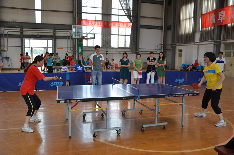 6月17日,由校工会主办的XK在线2013年教职工乒乓球团体赛在体育教学部球类馆正式开赛,副校长扈庆学宣布比赛开始并开球。 本次比赛参赛队共27支,参赛队员162人,曲阜校区13支,日照校区14支,各参赛队都派出本单位的“豪华阵容”。比赛采用5场3胜制,每场比赛采用五局三胜制,每局比赛采用11分制。第一阶段分组进行循环,小组取前两名进入第二阶段比赛,第二阶段采用循环赛制。 比赛一开始,选手们都打得比较平稳,几个回合之后气氛紧张起来,球桌上精彩的扣杀、巧妙的接球,令在场的观众兴奋不已。选手们意气风发,运用娴熟的技巧、敏捷的身手、旋转、抽球、吊球、落点,赛场不时传来阵阵热烈的掌声。各个代表队的选手们在比赛过程中,挥汗如雨,积极拼抢,不到最后一刻决不放弃的精神深深地打动了在场的每一个人。 6月24日晚8:00所有比赛圆满结束。最终,曲阜赛区附属中小学代表队取得团体第一名,机关二代表队取得团体第二名,化学与化工学院取得团体第三名,后勤代表队取得团体第四名,历史文化学院取得团体第五名,文学院取得团体第六名;日照赛区政治与公共管理学院取得团体第一名,日照图书馆取得团体第二名,音乐学院取得团体第三名,地理与旅游学院取得团体第四名,美术学院取得团体第五名,电气信息与自动化学院取得团体第六名。 (作者:佀黎明 杜佳莹 来源:校工会 编辑:新闻中心总编室 责编:徐秀)