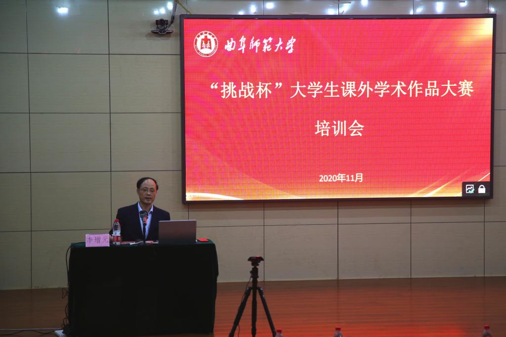 曲阜师大新闻中心讯 为培养同学们的创新精神与科研能力,为“挑战杯”省级比赛选拔优秀作品,校团委启动我校第十七届“挑战杯”大学生课外学术科技作品大赛并于11月18日举办第一期培训会。本次培训于XK在线曲阜校区孔子会堂及日照校区图书馆报告厅同步举行。活动由校团委副书记刘蓉主持,各学院团委书记和学生代表共同参加。