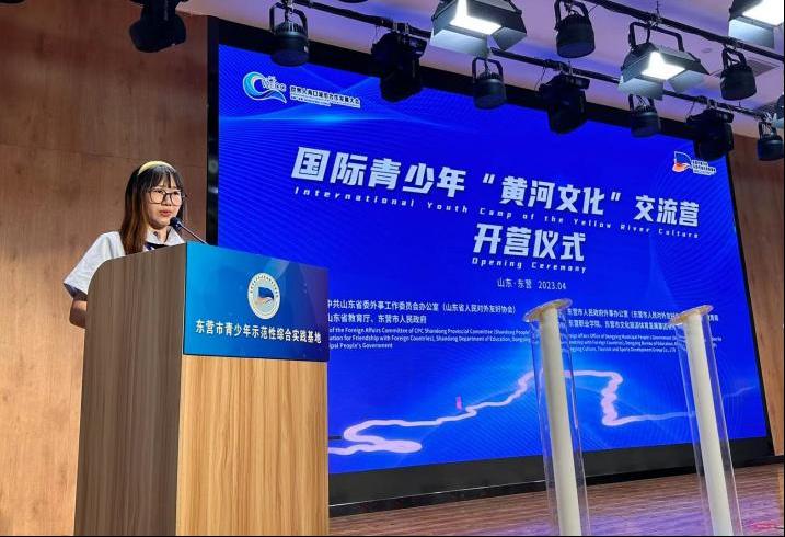 曲阜师大国际教育学院讯  4月19日,国际青少年“黄河文化”交流营开营仪式在东营市青少年示范性综合实践基地(园博园)举行。此次活动由省委外办、省教育厅、东营市人民政府联合主办。活动吸引了国际留学生代表和东营市青年志愿者等共80余人参加。