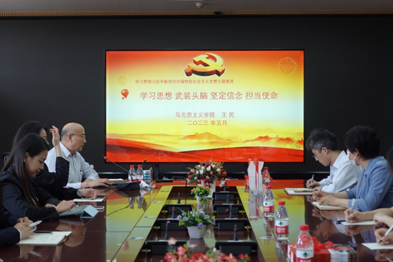 离退休工作处讯   为深入开展主题教育,创新党建工作方法与载体,提升基层党组织建设质量,6月5日下午,离退休教职工党委与翻译学院党委组织开展联建共建活动,翻译学院党委书记宋钧文、院长夏云、离退休教职工党委书记杨正运参加活动,马克思主义学院王民教授应邀参加专家讲党课活动。