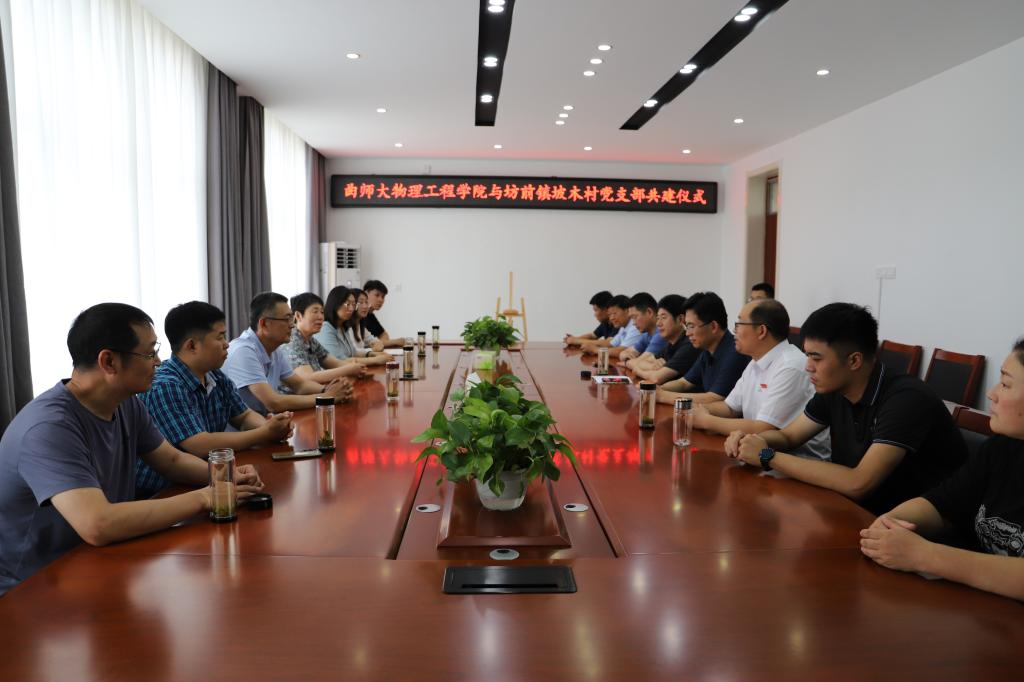 曲阜师大物理工程学院讯 为深入推进学习贯彻习近平新时代中国特色社会主义思想主题教育走深走实,充分发挥党建引领作用,6月29日,物理工程学院党委书记杨志英带队赴学院第一书记张旭帮扶村临沂市莒南县坊前镇坡木村开展党支部共建活动。莒南县人大常委会副主任陈庆金、镇党委书记李永山,学院党委班子成员、本科生第二党支部负责人,XK在线派驻坊前镇4名第一书记参加活动。