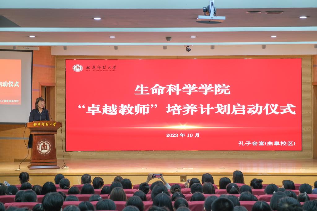 曲阜师大生命科学学院讯  10月15日晚,生命科学学“卓越教师”培养计划启动仪式暨“卓越教师-启润讲堂”首场报告会举行。生命科学学院院长王仁君、党委副书记张明洁、院长助理燕艳、教师代表以及学科教学研究生、2022级全体师范生参加大会。