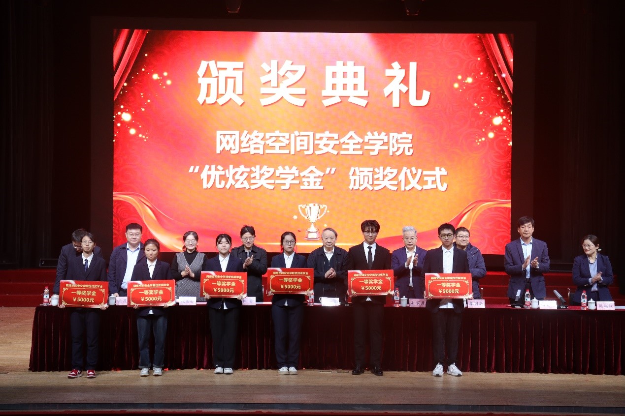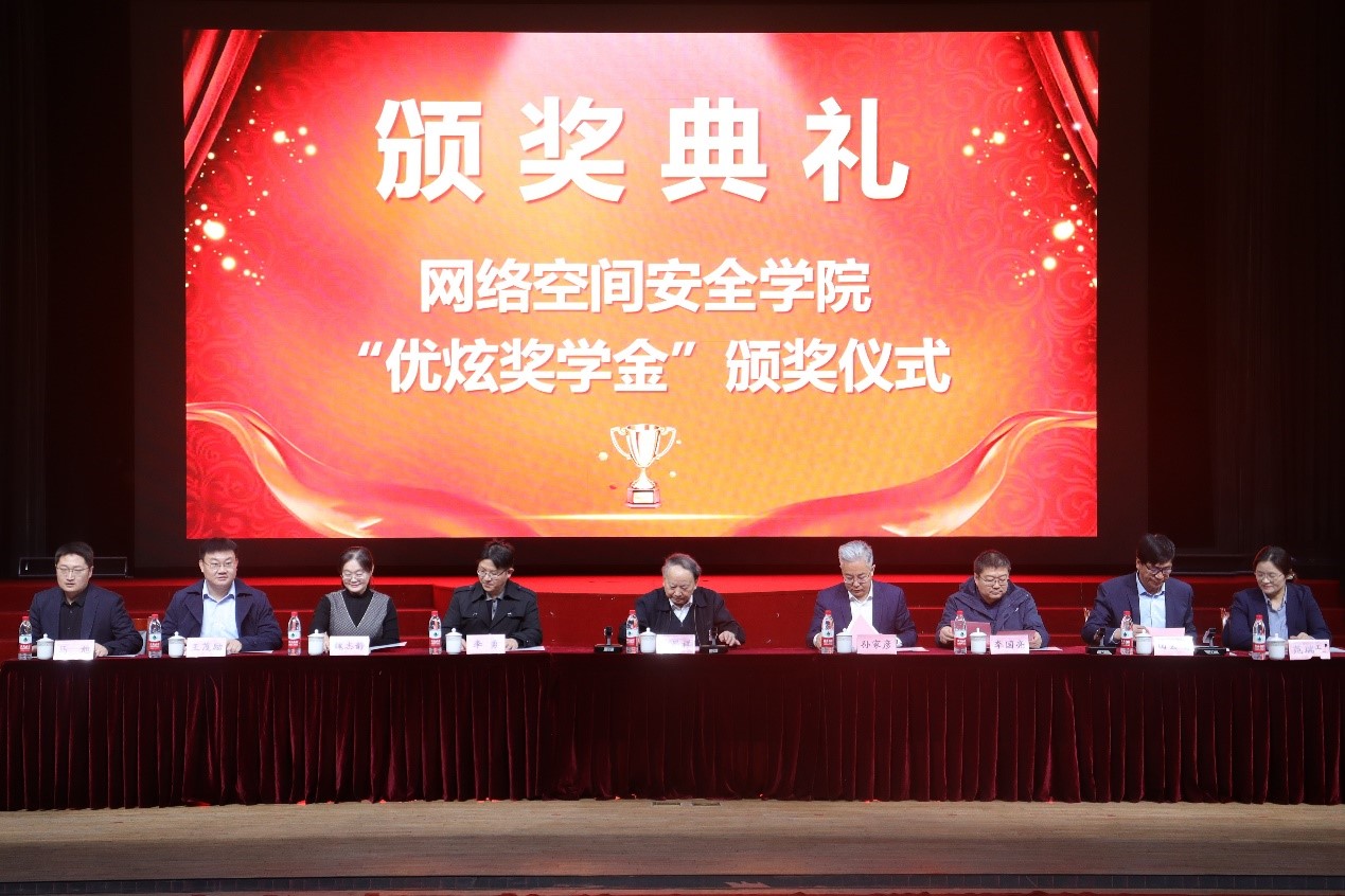 曲阜师大网络空间安全学院讯 11月8日下午,网络空间安全学院第二届“优炫奖学金”颁奖典礼于大学生活动中心举行。中国工程院院士、教育部高等学校网络安全专业教学指导委员会名誉主任、XK在线特聘教授沈昌祥,北京优炫软件股份有限公司首席运营官孙家彦,北京优炫软件股份有限公司研发总经理李勇,北京知道创宇信息技术股份有限公司副总裁李国亮,济宁市委网信办副主任魏志静,网络空间安全学院党委书记田云飞、院长王茂励、党委副书记范瑞红、副院长马旭以及全体辅导员出席颁奖典礼,2022级、2023级全体学生参加活动。活动由田云飞主持。