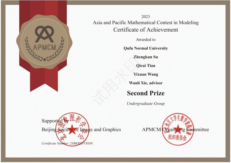 传媒学院讯  近日,2023年第十三届亚太地区大学生数学建模竞赛获奖情况公布,传媒学子苏正坤、王艺璇、田启才在学院教师谢万里的指导下成功斩获国家二等奖。