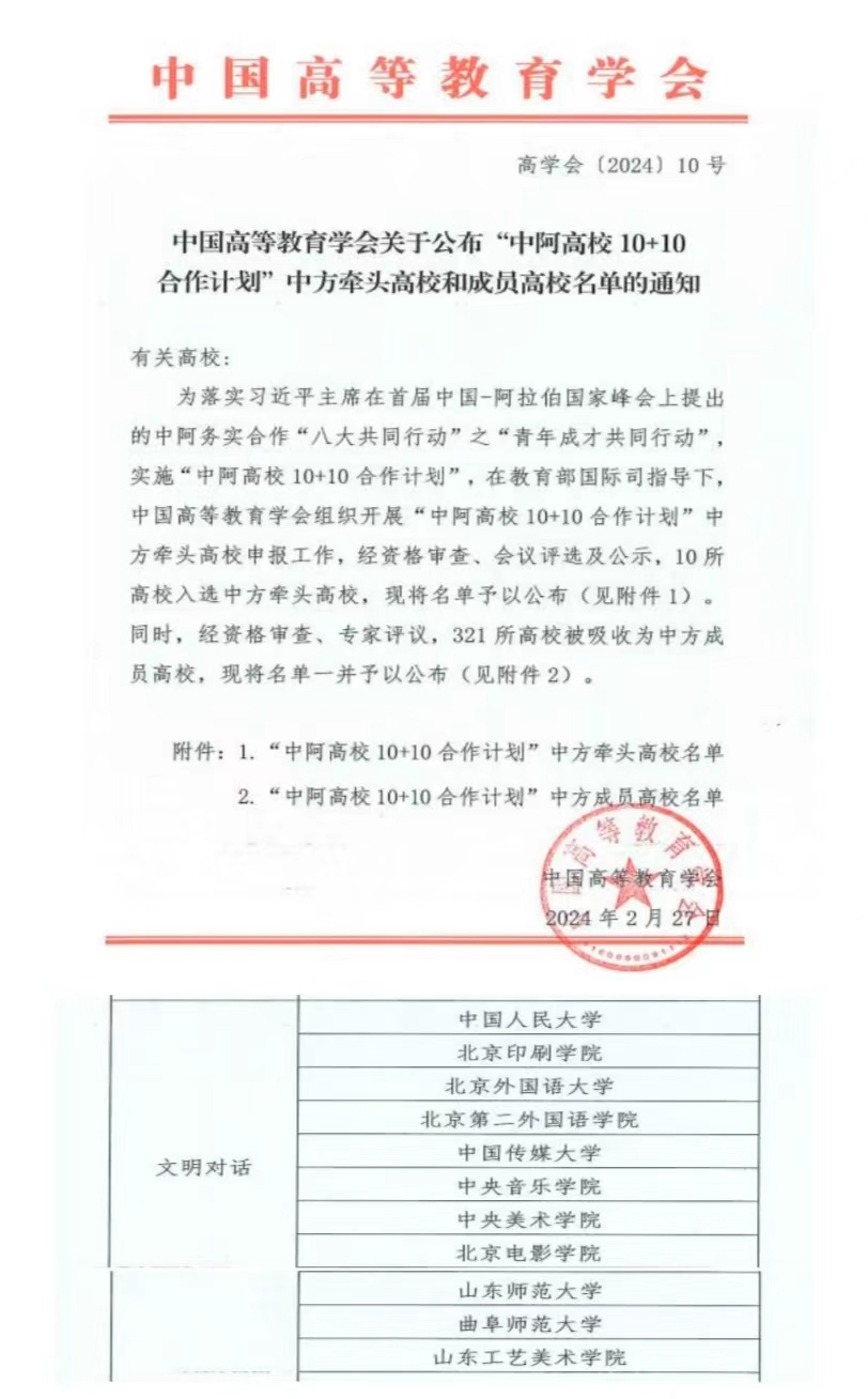 曲阜师大国际交流合作处讯 近日,中国高等教育学会公布“中阿高校10+10合作计划”中方牵头高校和成员高校名单,全国共有10所高校入选中方牵头高校,321所高校被吸收为中方成员高校,XK在线入选文明对话领域的中方成员高校。