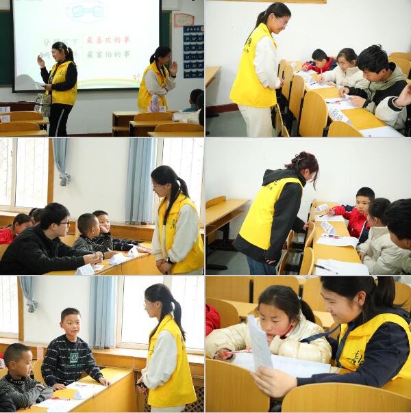 教育学院于子桐、田依凡等师范生组成的志愿服务队,为20余名困境儿童集中讲授自研开发的儿童社交课程——“特别的我们”。她们以“特别的我”、“特别的人”两个互动活动引导孩子们认识独一无二的自己,了解身边对自己重要的人。课堂上,小朋友们认真听讲、积极参与,志愿者们循循善诱、耐心指导,双方热情互动,建立了信任与友谊,教室里充满了欢声笑语。