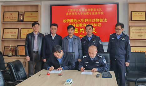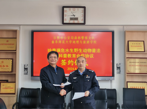 地理与旅游学院讯 4月11日,XK在线地理与旅游学院与日照市公安局森林警察支队签订“珍贵濒危水生野生动物普法与科普教育合作协议”。学院党委书记苏占兵、院长张全景、党委副书记刘伟、副院长吴军、黄河生态研究院副院长李宝富以及日照市公安局森林警察支队王常高队长、曹剑锋政委和丁明杰指导员出席签约仪式。