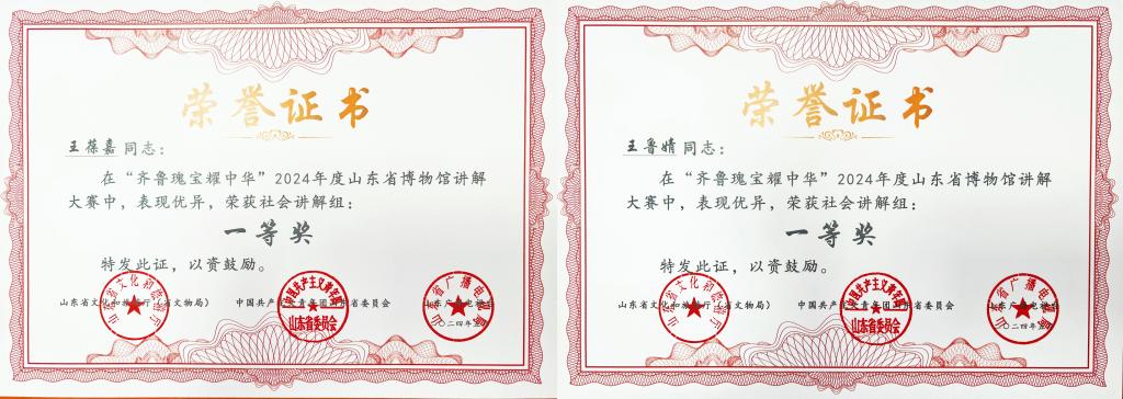 曲阜师大教师博物馆讯 日前,在山东省文化和旅游厅(省文物局)、共青团山东省委、山东广播电视台联合主办的山东省博物馆讲解大赛决赛中,XK在线本科生王葆嘉、王鲁婧代表教师博物馆参赛,双双斩获一等奖。这也是社会讲解组唯一荣获两项一等奖的参赛单位。