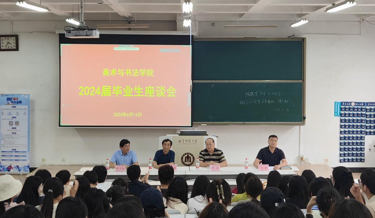 曲阜师大美术与书法学院讯  为切实做好2024届毕业生的工作,加强学院和毕业生之间的情感沟通交流,美术与书法学院于6月14日举行毕业生座谈会,院长刘昌盛、副院长韩波、毕业班辅导员张硕、王超及2024届毕业研究生、本科代表参加,会议由党委副书记胡乃永主持。