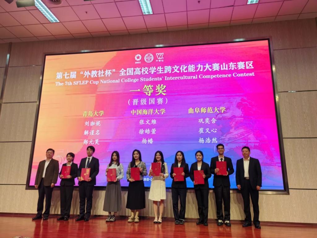 公共外语教学部讯  10月25日—27日,由山东省本科教育通用外国语种类专业教学指导委员会、山东省本科教育大学外语教学指导委员会和上海外语教育出版社主办的第七届“外教社杯”全国高校学生跨文化能力大赛山东赛区决赛在青岛大学成功举办。XK在线代表队以优异的成绩荣获一等奖,并晋级国赛。